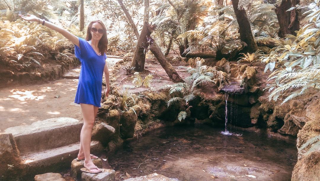 At the ‘beautiful waterfall’ and in the gardens
