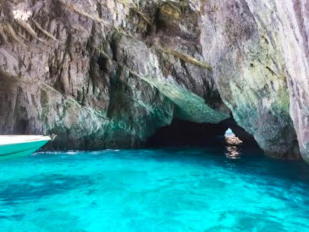 The Blue Grotto is a sea cave on the coast. The amazing shimmering blue colour of the water is created by sunlight passing through an underwater cavity and shining through, creating a blue reflection.