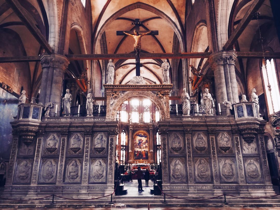 In 1231, this site was created as a monastery, though it quickly became too small, and by the end of the 1300s work was completed on the current, much larger, church. It’s now deisgnated as a minor basiliaca, and Titian (the most famous Venetian painter of the 16th century) is interred in the church. For me, the highlight was the incredible gothic pews.