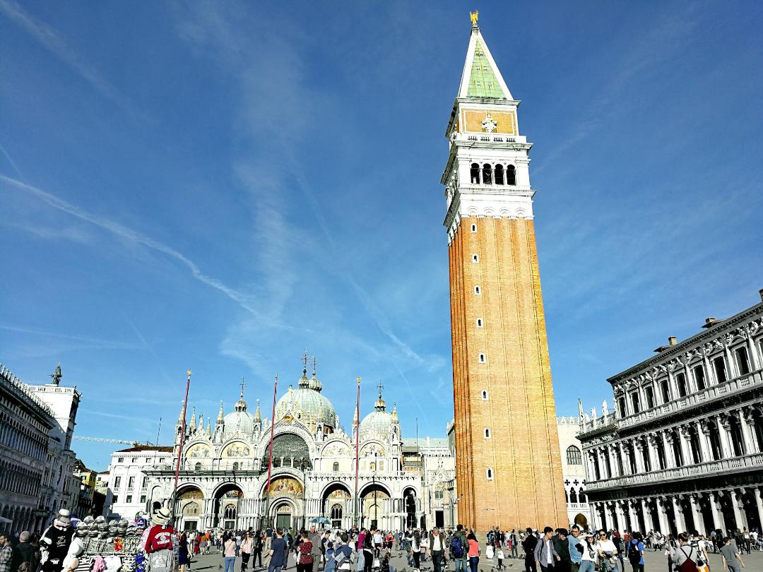 The Campanile is a tall tower in St Mark’s Square, which is actually the bell tower of St Mark’s Basilica (see below). The tower was reconstructed in 1912 following damage and at almost 100m high, is the tallest structure in Venice. I definitely recommend going for when it opens. We did, and still had to queue for 30 minutes. By the time we got down, the queue was 2 hrs long! The views over Venice are well worth it though, providing glorious scenes of the lagoons below.