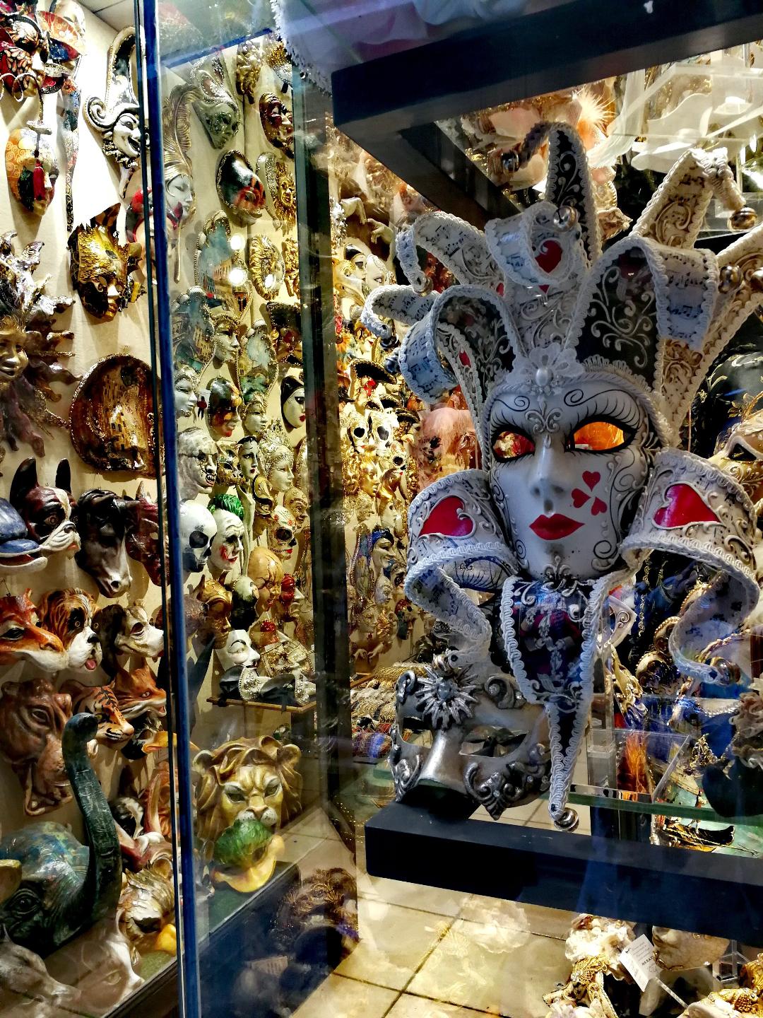 View of St Mark’s Square and a Venetian mask shop just off it