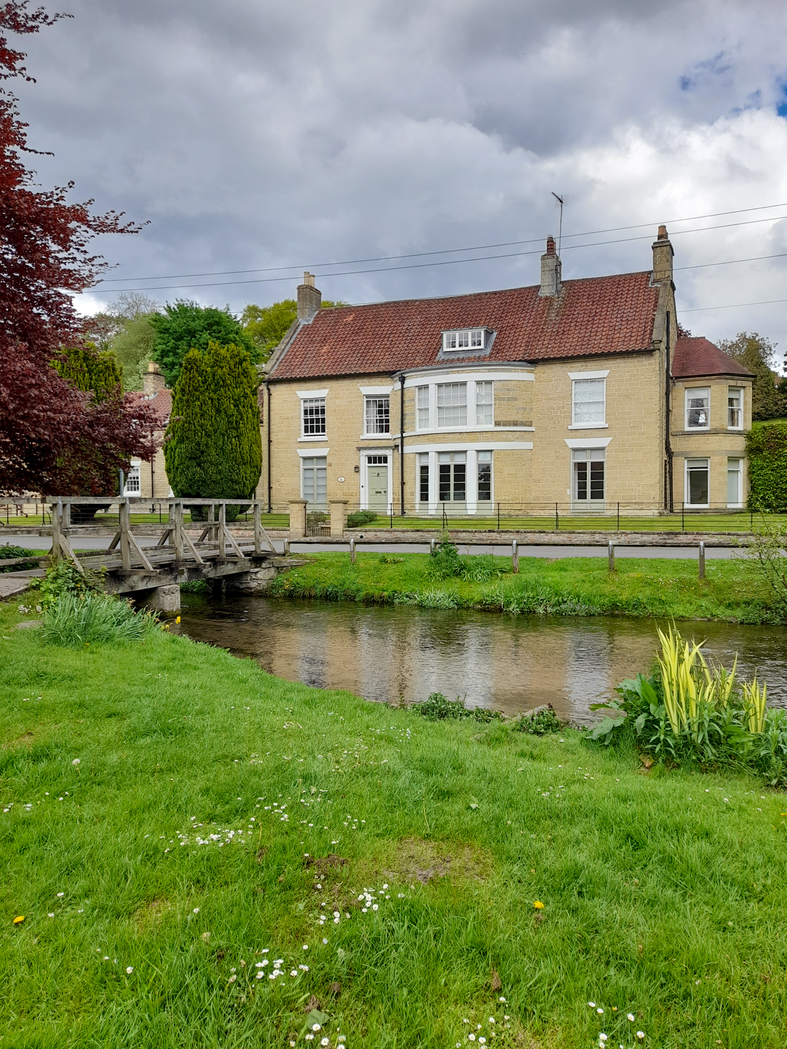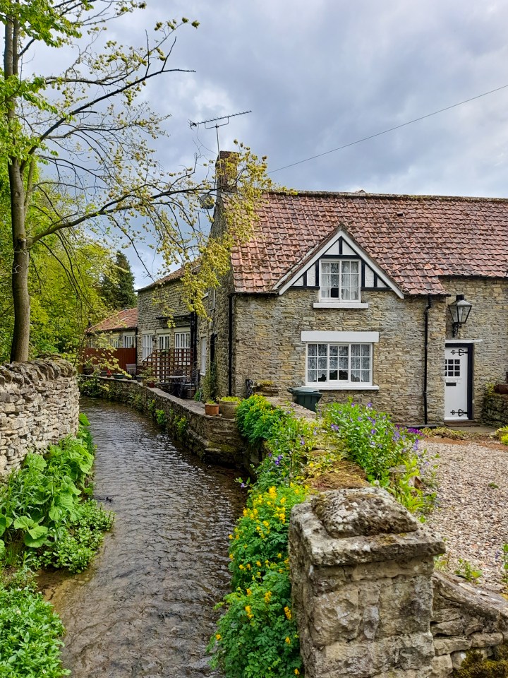 Once you arrive at the village green, turn right and go past the almshouses. These houses were founded in 1670 to house 12 poor people in the village. After walking past the almshouses, turn left as you’re going over the bridge, past the stunning Beck Isle Cottage.