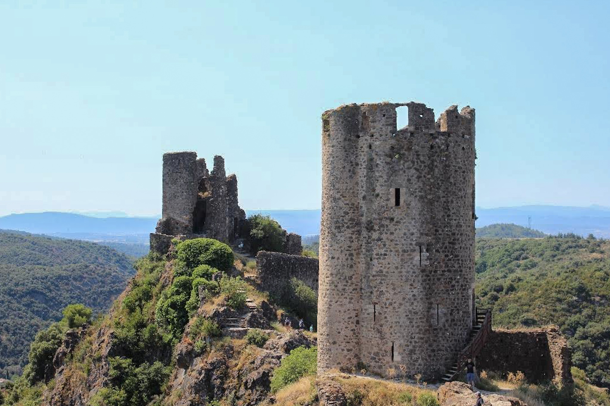 We visited Quertinheux first, the furthest south along the crest on an isolated rocky outcrop. It consists of a circular tower and a polygonal curtain wall. Its main draw is the incredible view out over to the other 3 castles.