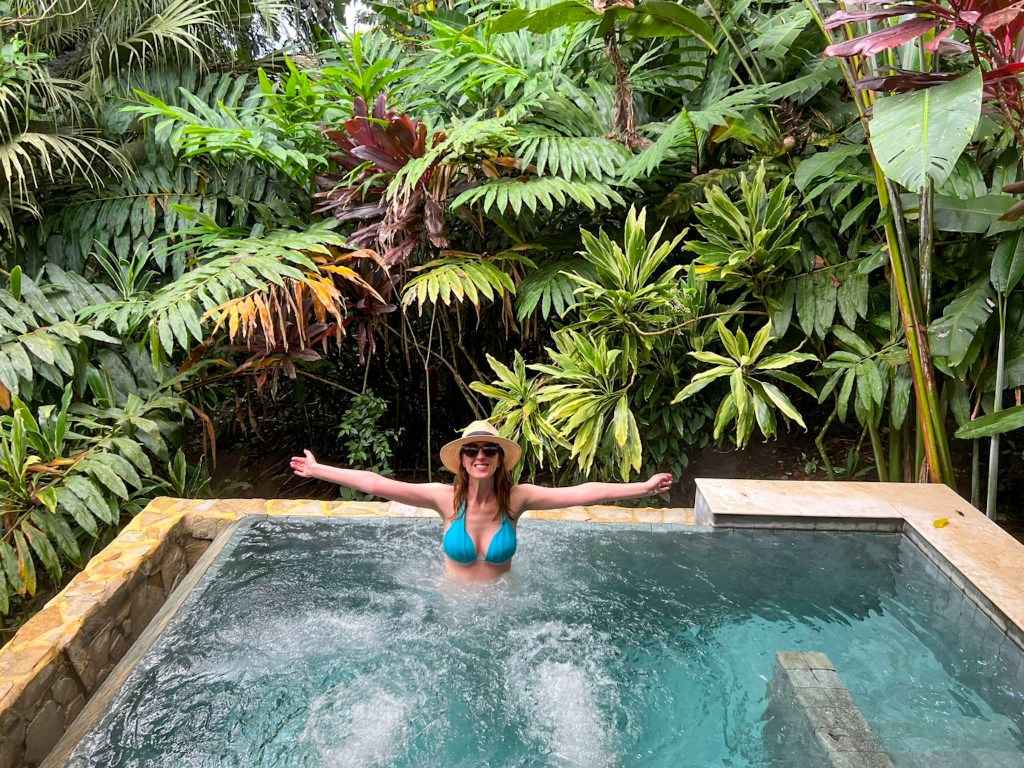 The area all around La Fortuna is famous for its hot springs. There are a number of free ones which lie along the main road, or you can pay to enter others for a day pass at a spa in one of the hotels (if your hotel doesn’t have its own). The most famous and beautiful are at La Tabacon Hotel but we chose to visit the springs in our hotel for free, and they were still beautiful. You can read my full review of our hotel, Nayara Springs, HERE.