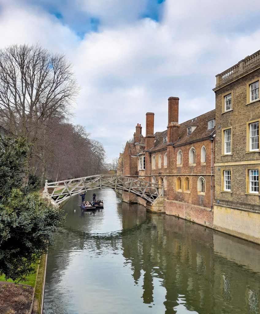 After this we headed to the river and across to see the Mathematical Bridge. Contrary to popular belief this wasn’t built by Einstein, being constructed after his death. It was fun to watch the punters go by from the riverside, even on a cold winter’s day.