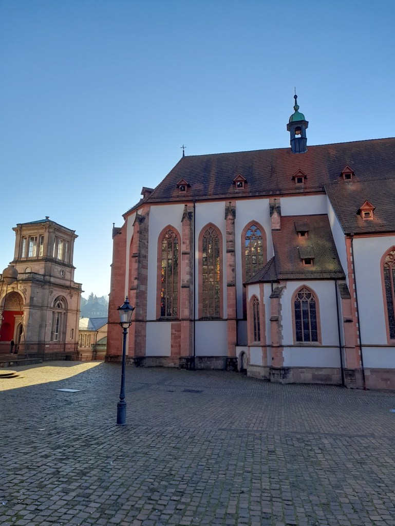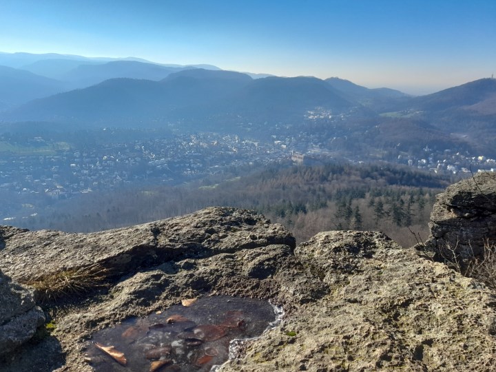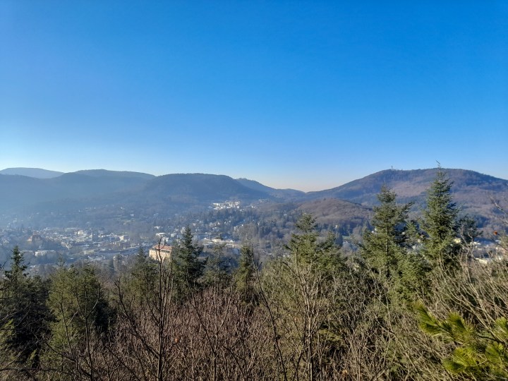 The walk starts at the Kurhaus just outside of central Baden Baden in its beautiful park. Stroll through the old town towards the Marktplatz and stop off to see the glorious Stiftskirche. It’s then time to head on up the steps behind the church until you reach the New Castle viewing platform terrace. The New Castle is currently closed for renovations, but the terrace is pretty beautiful – we managed to capture it in the early morning winter light. Wow.