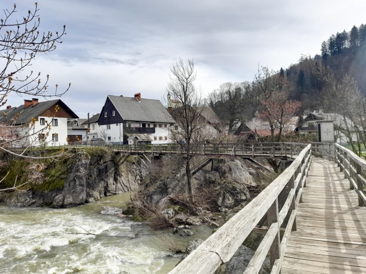 We spent our afternoon enjoying the nature surrounding the town. We walked alongside the river and decided to hike the path from Škofja Loka to Puštal. To enter this path you have to cross the Devil’s Bridge.