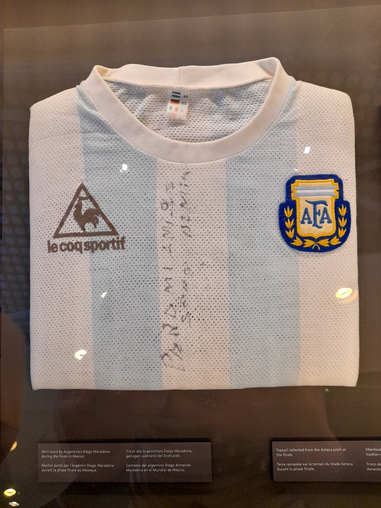 We really enjoyed this museum, although it wasn’t as good as the Olympics Museum in Lausanne. Understandably designed more with kids in mind, there was only one floor where the exhibits had lots of information to read and learn. That said, there were loads of cool things to see including Pele and Maradona’s shirts, overview sections of each world cup, and even the trophy itself!